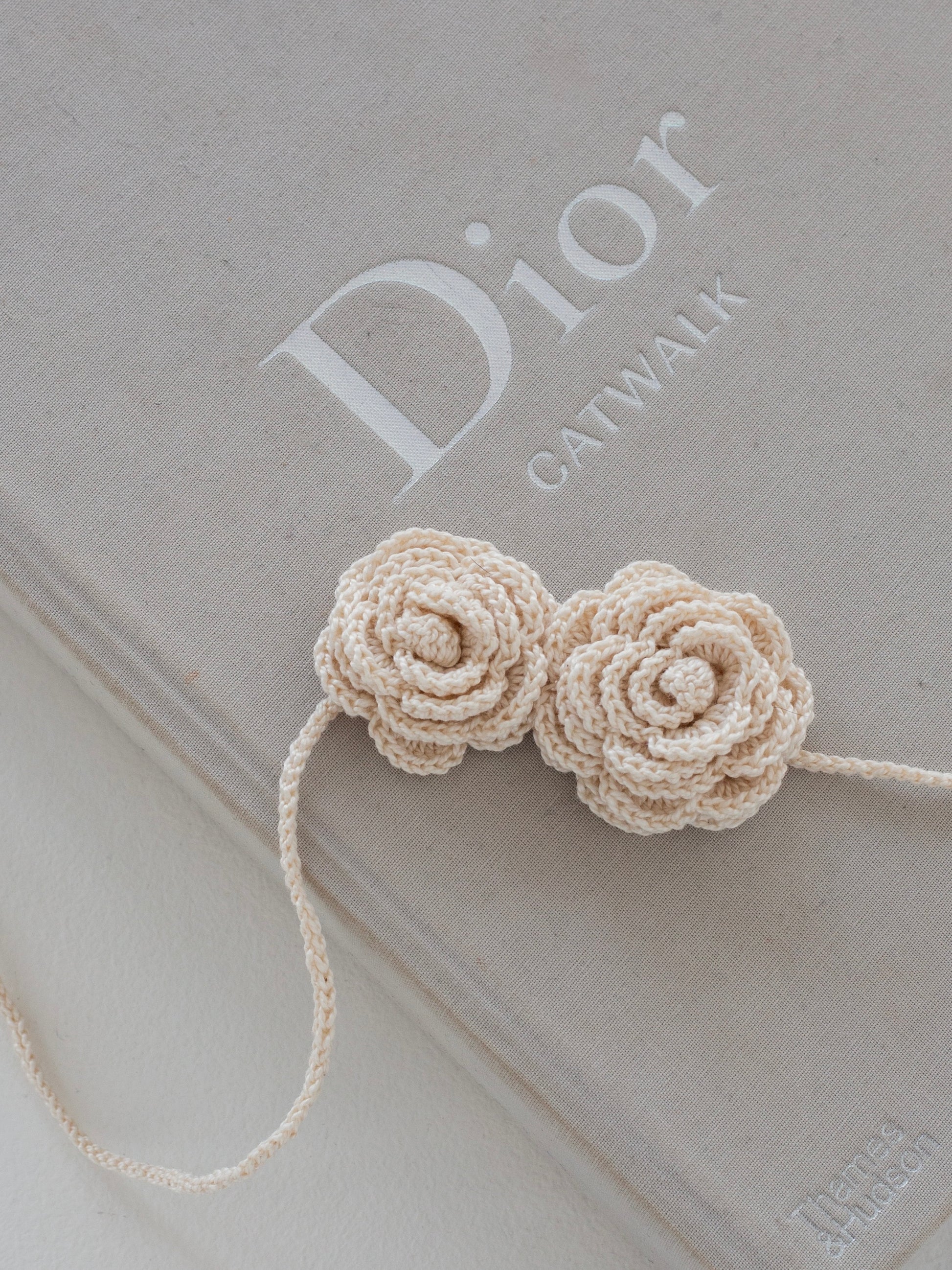 Delikatny Chocker Roses z ręcznie wykonanymi różyczkami, stworzony z wysokiej jakości kordonka bawełnianego w naturalnym kolorze. To wyjątkowy akcesorium, które możesz nosić na szyi ale również kreatywnie wykorzystać jako ozdobę na ręce, przy torebce, a nawet jako pasek do marynarki czy koszuli.