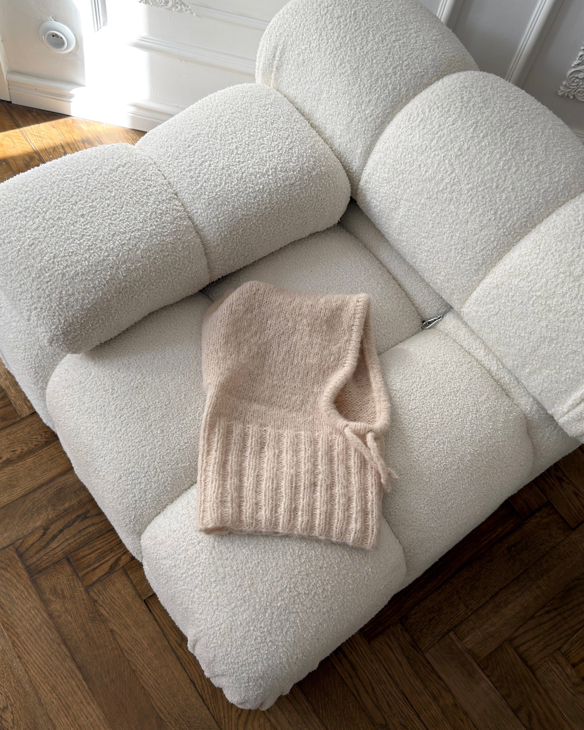 Kapturek Mist to lekki jak piórko i miękki jak chmurka dodatek wykonany z podwójnej nitki luksusowej mieszanki 77% alpaki i 23% jedwabiu. Delikatnie otula, zapewniając ciepło i wyjątkowy komfort noszenia. Łączy w sobie funkcję czapki i szalika, tworząc eleganckie i praktyczne dopełnienie zimowych stylizacji.