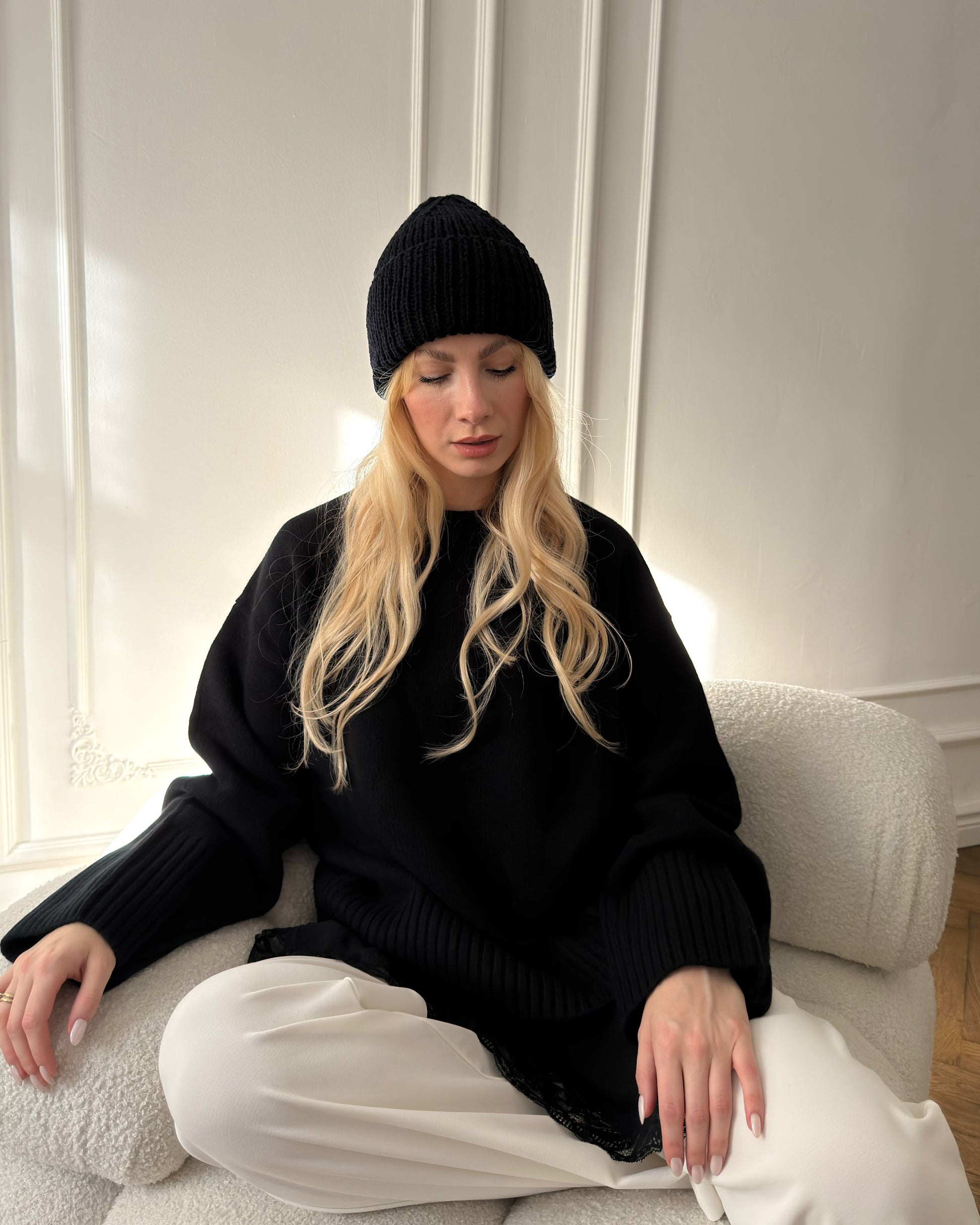 Materiały: 100% wełna merynosaPranie: Pranie wyłącznie ręczne w temperaturze do 30°C. Po praniu należy suszyć przedmiot na płasko, nadając odpowiedni kształt.Wymiary(+/- 1cm): obwód głowy - 51-56cm, długość całkowita - 31cm, długość wywinięcia - 9cm (do regulacji)Wysyłka: 5-14 dni roboczych (w zależności od ilości zamówień)